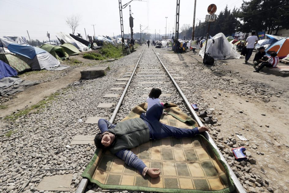 Un migrante descansa sobre las vías del tren en la frontera griego-macedonia cerca de la localidad helena de Idomeni. La Agencia de Naciones Unidas para los Refugiados (ACNUR) no colaborará con las autoridades europeas en el proceso de identificación de solicitantes de asilo en Grecia, que serán trasladados posteriormente a Turquía. (Armando Babani / EFE)-(20minutos.es)