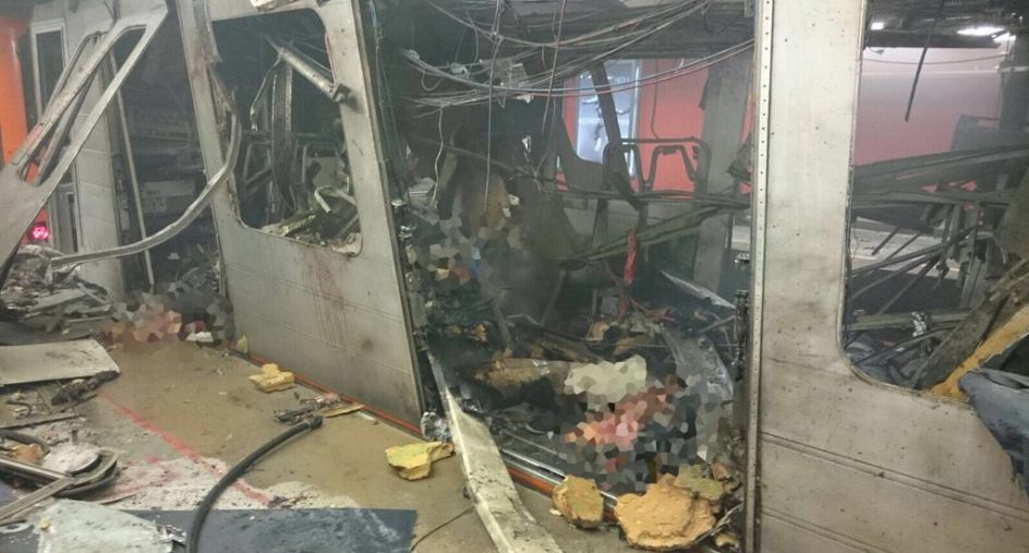 Estado en el que ha quedado un vagón de metro, tras la explosión que se ha producido en su interior (presuntamente por un terrorista suicida), durante una parada en la estación de Maelbeek (Bruselas). (@alxdm / TWITTER)-(20minutos.es)