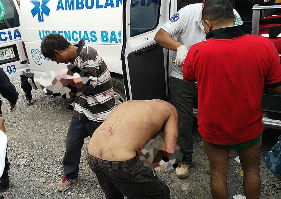 Un médico presta los primeros auxilios a seis hombres y una mujer a los que les fueron amputadas las manos por un grupo de desconocidos, en Tlaquepaque (México). Las víctimas, presuntos ladrones, también fueron marcadas en la frente por sus agresores con la leyenda "soy ratero". (STR / EFE)-(20minutos.es)