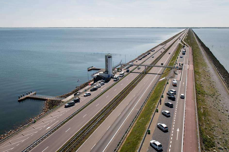 El dique de Afsluitdijk, proyectado a finales del XIX por el ingeniero y político Cornelis Lely, cerró el mar interior de Zuiderzee, en el noreste de Holanda, para evitar las inundaciones y generar nuevo suelo para la agricultura y el desarrollo de ciudades como Almere o Lelystad. Sus 32 kilómetros de longitud hacen de esta barrera una de las pocas estructuras artificiales visibles desde el espacio. (Turismo de Holanda)-(20minutos.es)