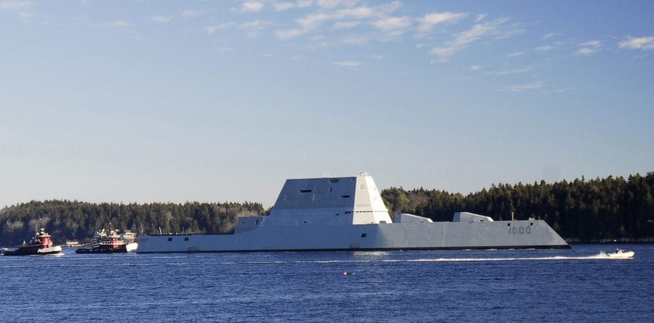 El destructor USS Zumwalt (DDG 1000) durante unas pruebas en el Río Kennebec en Maine (EE UU). El barco, casi invisible al radar, ha sufrido una avería en el Canal de Panamá y ha tenido que ser remolcado a puerto. (Us Navy / General Dynamics Bath / EFE)-(20minutos.es)