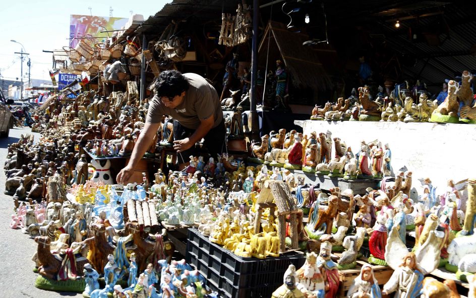 Vista de pesebres de cerámica puestas a la venta en el mercado de Asunción (Paraguay). Los tradicionales pesebres de cerámica de la localidad de Areguá, a 28 kilómetros de Asunción, comienzan a venderse en el Mercado 4 de la capital,