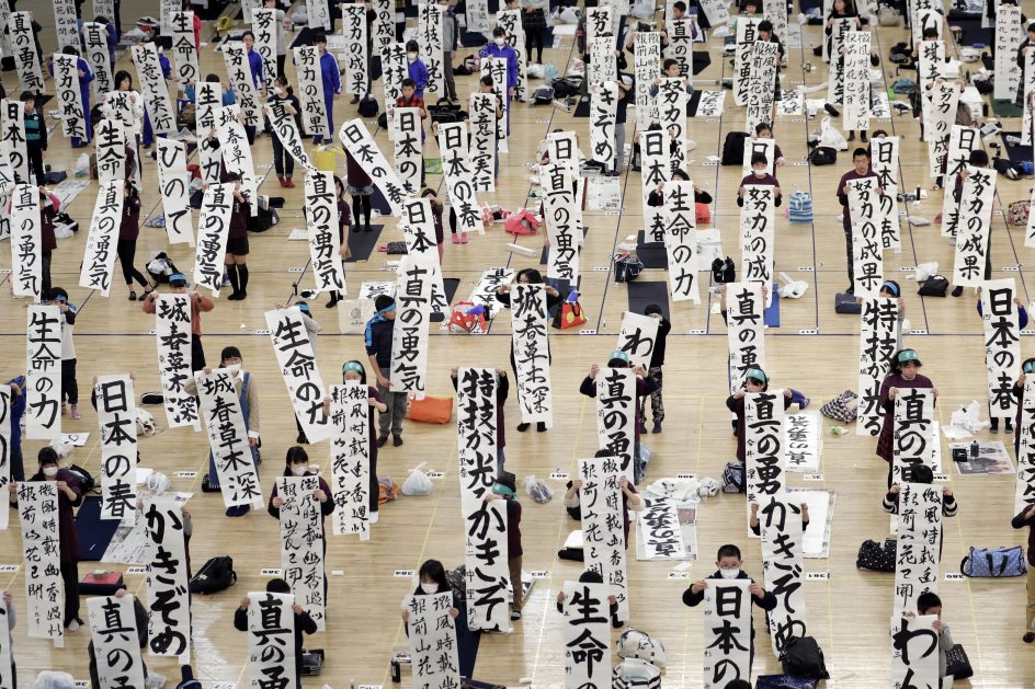 Niños y adultos participan en el tradicional concurso de caligrafía de Año Nuevo, en Tokio (Japón). Cerca de 3.000 personas de todas las edades participan en este evento para mostrar sus habilidades. (Kiyoshi Ota / EFE)-(20minutos.es)