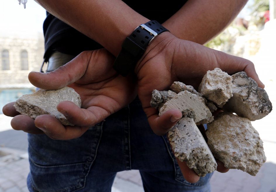 Un palestino sujeta una piedras durante una protesta en la calle Shuhada, la principal vía de la ciudad cisjordana de Hebrón. Un grupo numeroso de jóvenes protestó en contra del cierre de esta avenida, controlada por el Ejército israelí. (Abed al Haslhamoun / EFE)-(20minutos.es)