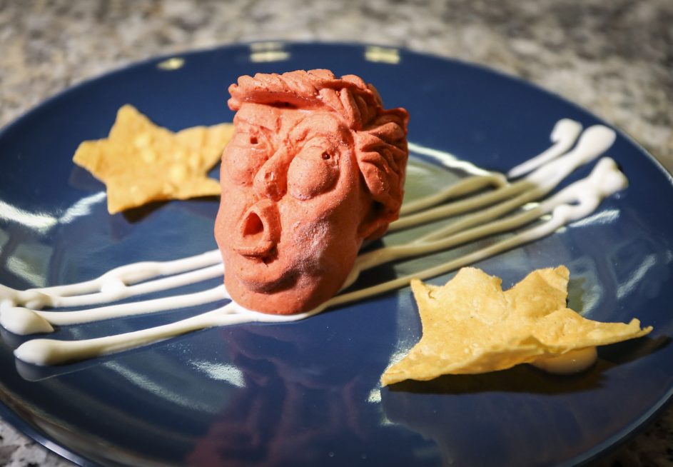 El dicho de Donald Trump está en boca de todos ha pasado a la literalidad en Valladolid, gracias a un pincho "un poco rebelde" que recrea el rostro del presidente de los Estados Unidos, y que guarda en su interior toda la esencia de México. (R. García / EFE)-(20minutos.es)